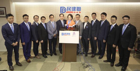图:李慧琼(中)昨晚率领平易近建联新一届带领层会见传媒,暗示新特首即迁就任,平易近建联将努力取现届和新一届特区加强合做\大公报记者林少权摄