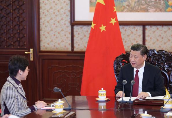 图:国务院总理李克强(中)正在紫光阁会见林郑月娥/中新社