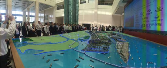 工员向调查团引见南沙自贸区(大公报记者胡若璋摄)