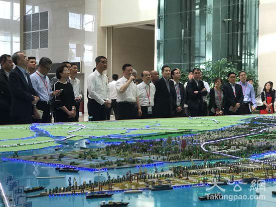 大公网4月19日讯 19日上午,喷鼻港特区行政长官梁振英率领约35人调查团从喷鼻港出发,调查粤港澳大湾区城市群。调查团早上由喷鼻港尖沙咀坐船前去广州南沙,参不雅此行的第一坐南沙自贸区规划馆。