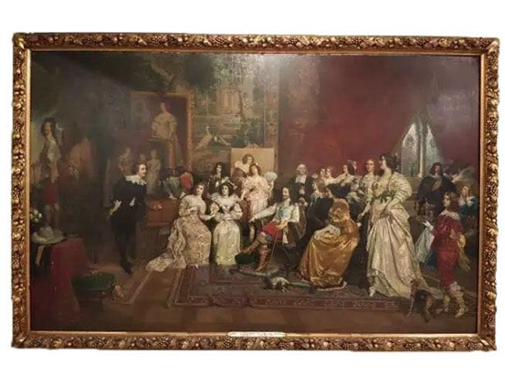 所有做品中,此中一幅尺寸201 x318庞大的宫廷画惹人瞩目,这幅面正在1901岁首?年月次展出时曾被称为“比利时近代最精采的油画”,它的做者Eugene Siberdt恰是世界巨匠梵高已经的教员,画做描述了1632年,国王查理一世到出名画家AnthonyvanDyck的工做室,查看即将完成的肖像情景。