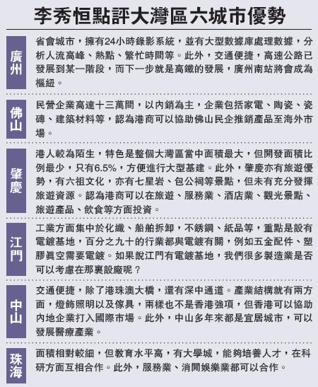 图:李秀恒认为港人该当视大湾区是同步成长的机遇,大湾区概念值得支撑