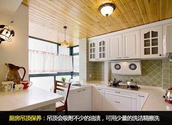 1、厨房吊顶的洁净:厨房间的扣板大师会选择拉丝或者纳米板,一般都有很好的抗油污性,日常平凡只需用软布来擦拭下即可。但长时间没有清洗的话,吊顶会吸附不少的油渍,这时要用少量的洗洁精,用吸水性较强的软布沾水后去擦洗。