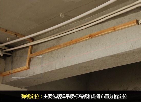 吊顶弹线次要包罗弹吊顶标高线和龙骨安插分格定位。标高线可用水柱法标出吊顶平面,然后按弹出标高线;龙骨分格定位需按照饰面板的尺寸和龙骨分格的安插确定。为了安拆便利两龙骨,核心线的间距尺寸一般大于饰面板尺寸2MM。龙骨分格安插需尽量包管龙骨分格的平均性和完整性,以包管吊顶有规整的结果。先按比例正在纸上画出吊顶面积,再按龙骨安插的准绳正在纸上对吊顶龙骨进行分格放置。确定好放置后,再将定位的画正在墙面上。