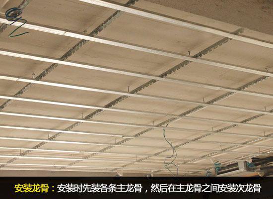 龙骨一般有从龙骨取次龙骨之分。安拆时先将各条从龙骨吊起后,正在稍高于标高线的上姑且固定,若是吊顶面积较大,可分成几个部门吊拆。然后正在从龙骨之间安拆次龙骨,也就是横撑龙骨。横撑龙骨截取应利用模规来丈量长度。安拆时也使用模规来丈量龙骨间距。