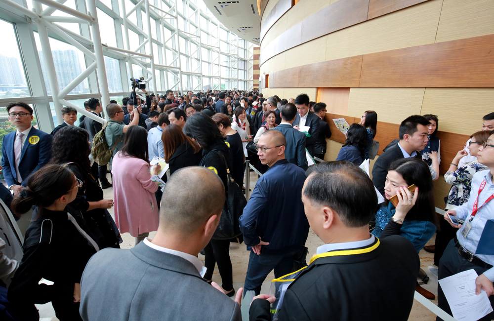 图:华懋旗下九龙塘新盘贤文礼士昨日开卖,售楼处大排长龙,高峰期估量约500人打蛇饼,单日已卖79伙,佔可售伙数96伙的82%,成长商透露有两组大手客各斥约1.6亿至1.7亿元各扫四伙。一手火热不减,二手亦正在发急式抢货下不竭破顶,鸭脷洲海怡半岛有三房户以1630万元沽,实呎近1.9万元,创屋苑分层尺度户呎价新高;另沙田第一城蚊型户呎售逾1.66万元,破尽屋苑分层记载。
