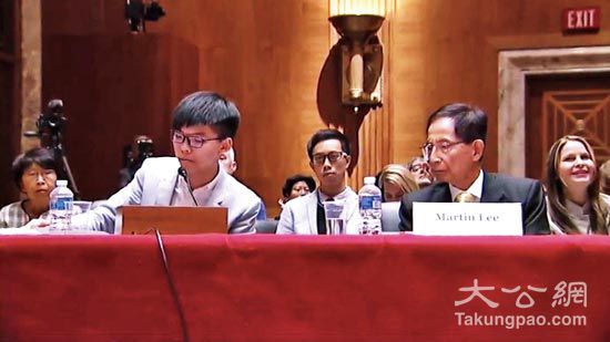 李柱铭及黄之锋于美国听证会上继续唱衰喷鼻港。网上截图