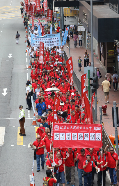 大公网5月2日讯(记者汤凌琰)工联会趁昨日蒲月一日劳动节,为权益、争工道大逛行,跨越4000人加入,尽快打消强积金对冲轨制、同一假期取公家假期为17日,及耽误男性侍产假及女性有薪产假。工联会理事长吴秋北暗示,强积金对冲轨制冲走了打工仔约300亿元钱,但愿尽快定出具体处理方案。讲话人回应,的方针是正在今届任期内敲定打消强积金对冲的方案。