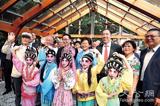 林郑月娥参取大澳文物酒店开业五周年社区,取一众粤剧小演员合。大公报记者黄洋港摄