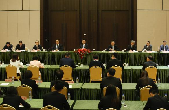 图:全国常委会委员长(左三)昨正在澳门取教育界及青年学生座谈时暗示,但愿澳门学生添加对一国两制的自傲\大公报记者曾庆威摄