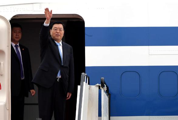图:地方局常委、全国常委会委员长登上专机,向正在场人士挥手道别\中新社