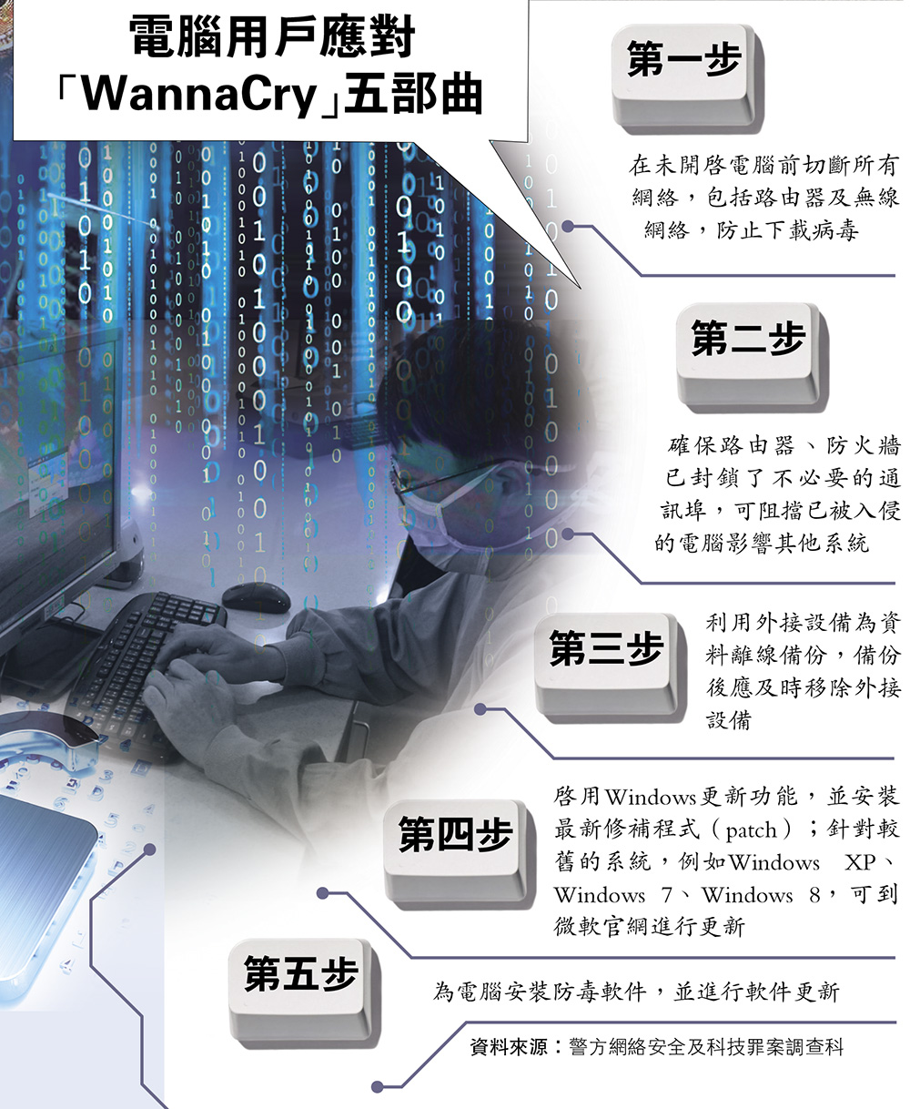 (记者汤凌琰)电脑软件WannaCry杀入喷鼻港,电脑视窗版本较旧、且无资讯科技部的中小企业,成为高危群组。有中小企业担任人暗示,已要求员工进行材料备份,但担忧软件影响范畴会持续扩大,难以对付。