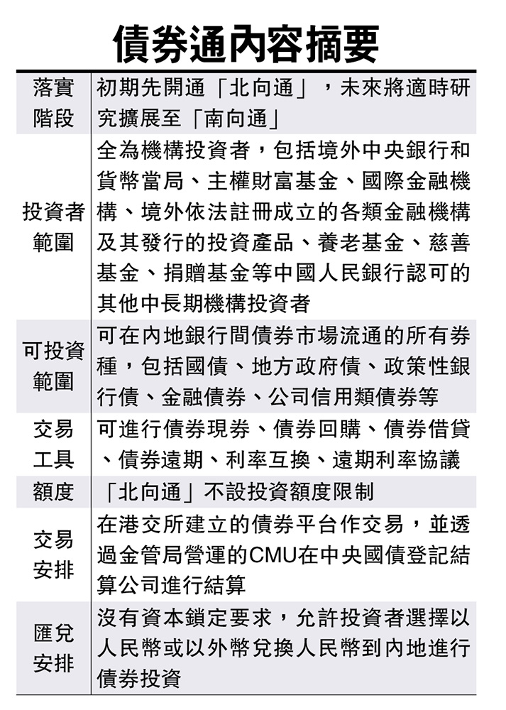 ¡¡¡¡¹úÎñÔº×ÜÀíÀî¿ËÇ¿±¾ÄêÈýÔÂÔø°µÊ¾£¬»áÓÚ±¾ÄêÆô¶¯Õ®È¯Í¨¡£¼°ºó£¬±¾¸Û¼°Äڵصļà¹Ü»ú¹¹±ãÃÜÂà½ô¹Ä½øÐгﱸ¹¤×ö¡£ÇúÖÁ×òÈÕ£¬½ð¹Ü¾Ö¼°ÈËÆ½Ò×½üÒøÐÐÕýʽ·¢²¼¿ªÕ¹Õ®È¯Í¨£¬Ä¿±êÊÇΪ¾³»ú¹¹Í¶×ÊÕßÂòÂôÁ½µØÊг¡µÄծȯ£¬¹©¸ø±ãµ±»¯µÄ¿ç¾³Æ½Ì¨¡£³õÆÚÏÈ¿ªÍ¨±±Ïòͨ£¬¼´Åç±Ç¸ÛºÍÆäËû¹ú¶ÈÈ¡µØÓòµÄ¾³ÍâͶ×ÊÕߣ¬¾ÓÉÅç±Ç¸ÛÈ¡Äڵظù±¾É豸»ú¹¹Ö®¼äÕýÔÚÂòÂô¡¢Óš¹Ü¡¢½áËãµÈ·½Ã滥Áª»¥Í¨µÄ»úÖÆ·ÅÖã¬Í¶×ÊÓÚÄÚµØÒøÐмäծȯÊг¡¡£