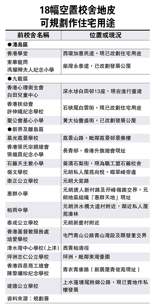 大公网讯(记者 曾火速)规划署完成检讨空置校舍的久远地盘用处,傍边18幅可规划做室第用处,包罗五幅别离位于西区、东区、黄大仙及深水埗的市区用地,现已完成地盘用处改划,部门已拨做成长公屋,最快可望于两年后有单元供应。有丈量师指,市区熟地难求,土地即便面积不大,亦会吸激发展商强烈热闹竞投。相关注集体认为应将更多空置校舍拨建居屋或绿置居。