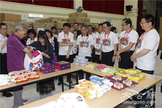 图:共庆回归显关怀打算的家访,义工正在启动礼上向参取家访的官员示范包拆礼品包的法式