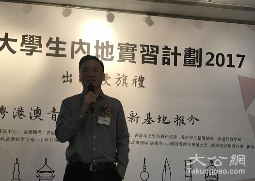 下战书四点半准时起头,喷鼻港出格行政区行政会议、港区全国代表陈智思先生致辞暗示,这个打算的成功进行,要感激所有对这个的支撑者,并对该赐与了很高的表扬和等候,预祝加入者正在本年的满载而归。随后副从任陈冬先生为此打算授旗,颁布发表2017年喷鼻港大学生内地打算启动。