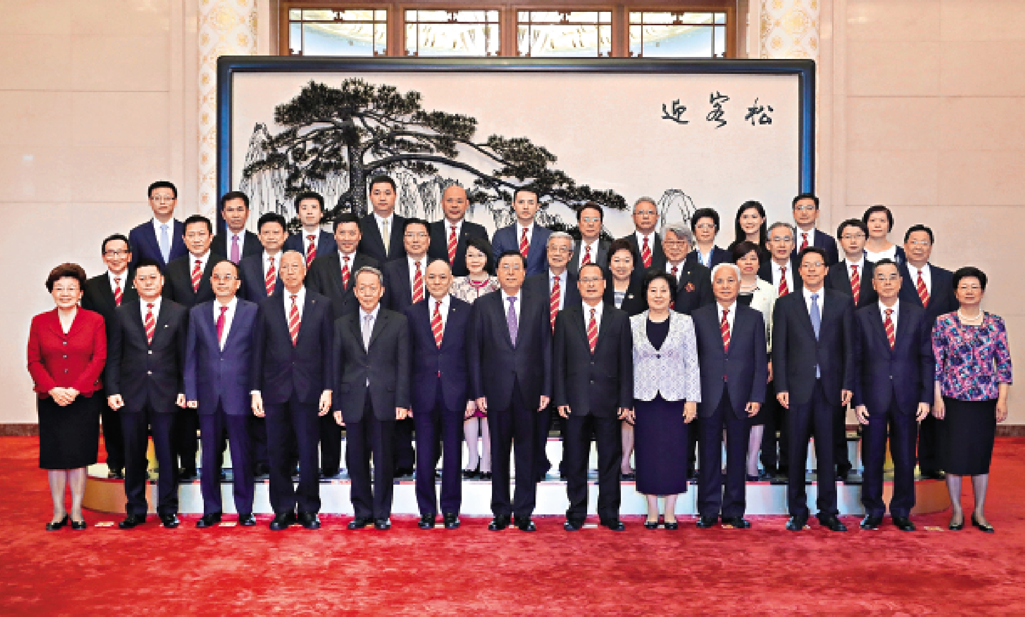 图:全国常委会委员长正在人平易近大礼堂会见喷鼻港中华总商会访京团