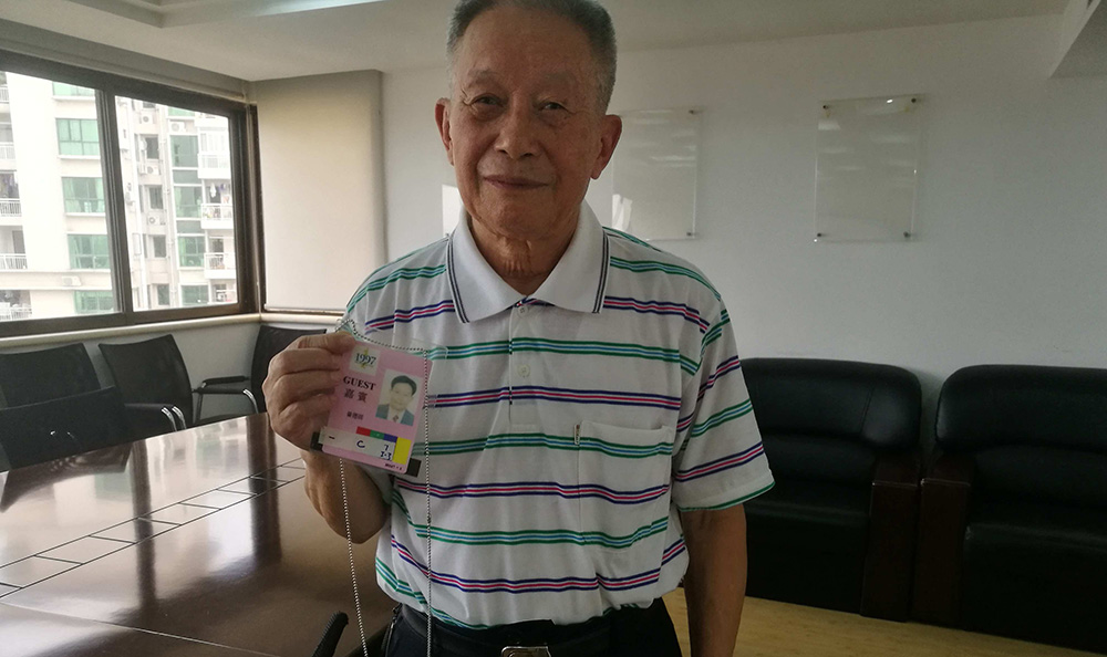 图:曾德润展现昔时出示喷鼻港回归的嘉宾证件 大公报记者石华摄