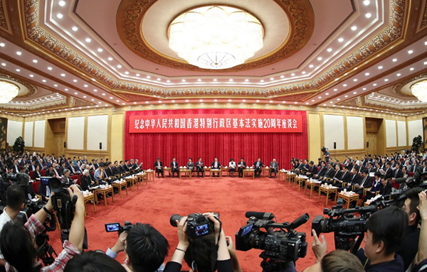 留念中华人平易近国喷鼻港出格行政区根基法实施20周年座谈会27日上午正在人平易近大礼堂隆沉举行。