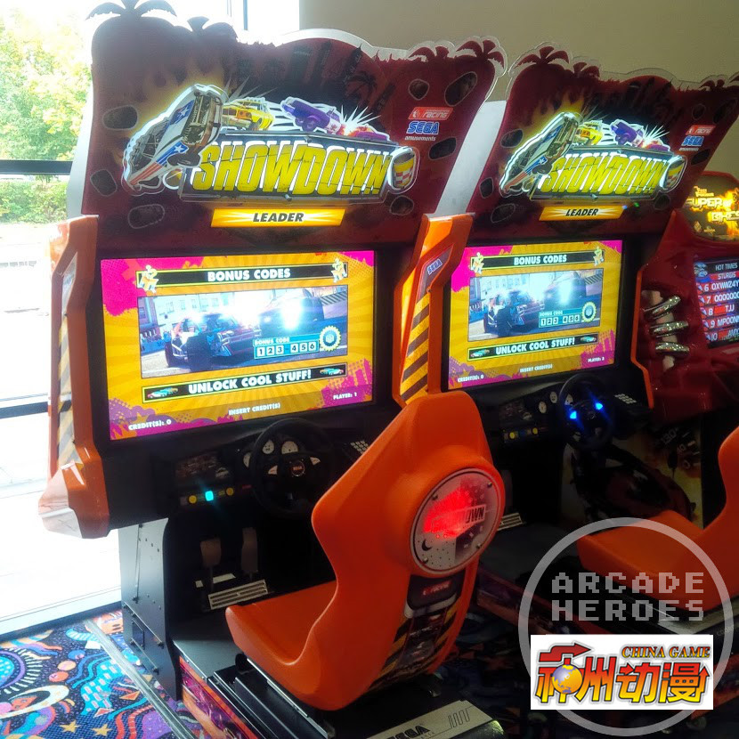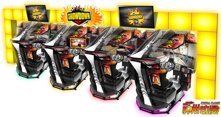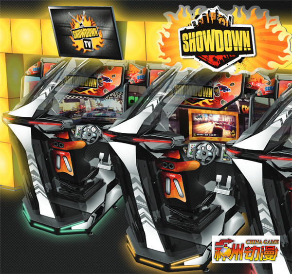 由Codemasters公司所制作的DiRT操作游戏《一决雌雄(Showdown)》,搭配了最吸引人的游戏机框体。坐在游戏机前面,可感受到四个100英寸(约76.2寸)LED高清投射屏幕画面,搭配动感模拟技术,保证让玩家真实体验竞速与过弯的快感;整个机台还配备了含刻度盘的仪表盘、警示灯、转换开关以及5.1环绕声系统。在展会现场,游客将可从20部机台中任选一部试玩,体验不同类型的比赛模式。