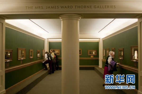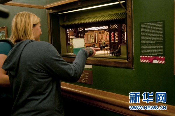 ??????? 参观者1月29日在芝加哥艺术博物馆内的微缩家居展览厅参观微缩家居室。为迎接中国传统春节,芝加哥艺术博物馆特别为中国微缩室布置了新的中国春联,并以中国神话故事《白蛇传》为题材,特别创作了一套白蛇传皮影人物、舞台及乐器等有关道具。同时,为了方便春节期间前来参观的中国观众,博物馆在2月14日至3月1日期间,特别推出免费的中文语音导游服务。新华网记者何险峰摄