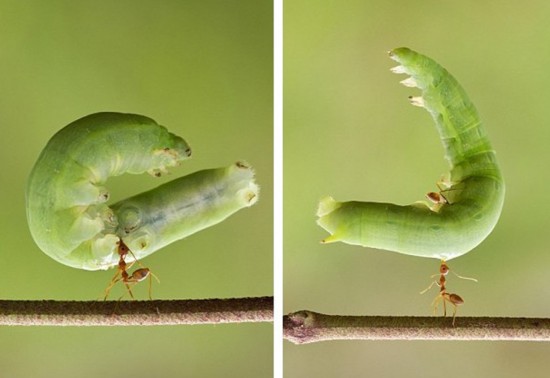原标题:动物界大力士:印尼小蚂蚁轻松举起大毛毛虫(组图)