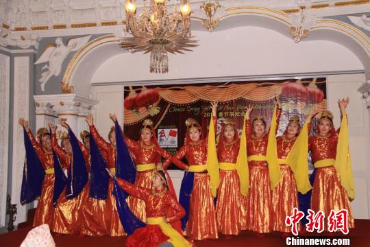 图为中国驻尼大使馆馆员表演尼泊尔舞蹈。李明明摄