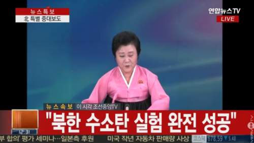图为朝鲜宣布氢弹试爆成功的电视画面