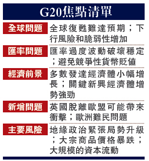 G20财长和央行行长们经过讨论认为,近期市场的过度波动与全球经济基本面温和复苏的状况并不相符,经济下行风险和脆弱性加大。他们强调,将各自和共同采取所有政策工具,包括货币、财政政策和结构性改革等,来应对风险、增强市场信心和促进经济增长。
