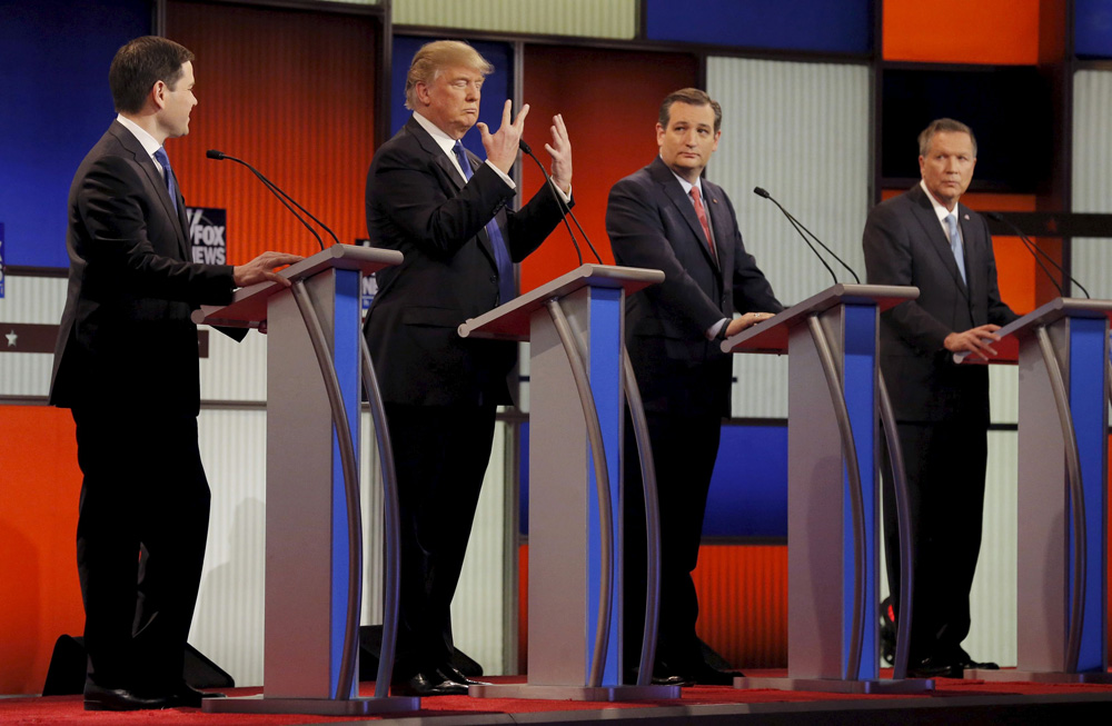 超级星期二选举后,共和党四位参选人当天在霍士新闻主办的电视辩论上再度交锋。就在电视辩论前数小时,2012年共和党总统候选人罗姆尼挑起党内主流派反特朗普的大旗。他在盐湖城犹他大学演说时火力全开,号召共和党选民从鲁比奥、克鲁兹和卡西奇中选一个支持者,不要支持特朗普草田策划
