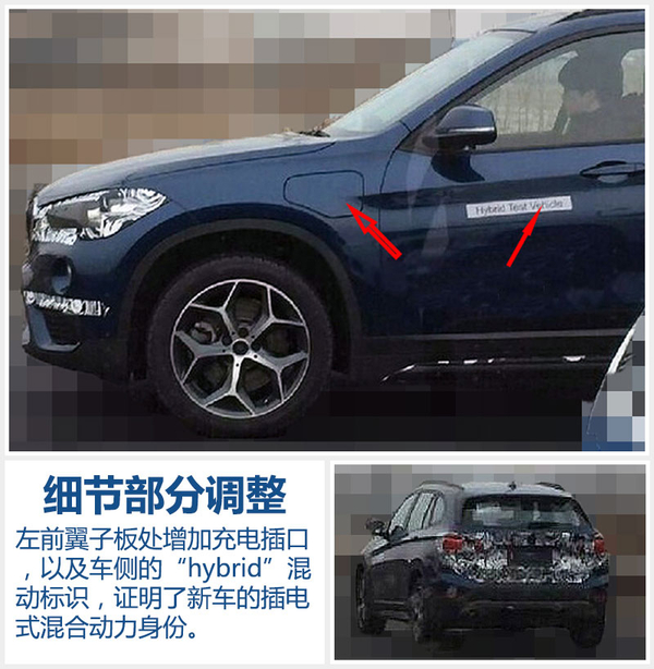 从最新曝光的谍照中可以看出,新车在左侧前翼子板处增加了充电插口,以及车身侧面也有hybrid的混动标识,来证明它的插电式混合动力身份。除了部分细节方面的调整外,预计全新X1插电混动版车型的整体造型将与普通燃油动力车型保持一致。