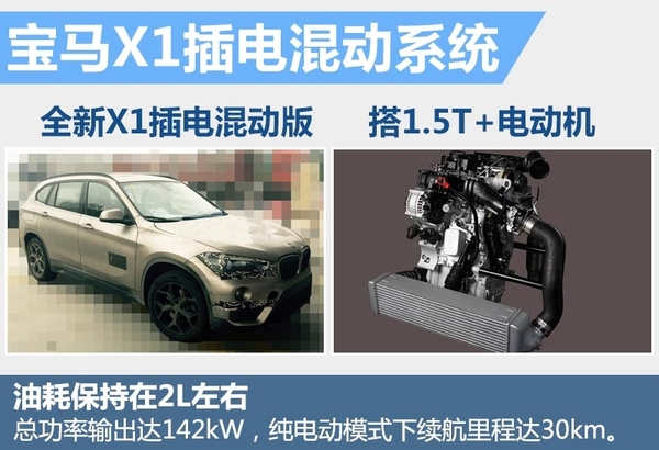 动力方面,X1插电混动版将搭载一款1.5升三缸涡轮增压汽油发动机和一台后置电动机,电动机最大输出功率可达65千瓦,峰值扭矩165牛米,总功率输出可达142千瓦,预计综合油耗将保持2升左右的水平。另外,宝马正在建设中的高压电池中心将为X1插电混动车,周末活动,以及华晨宝马未来所生产的所有插电式混合动力车提供电池。