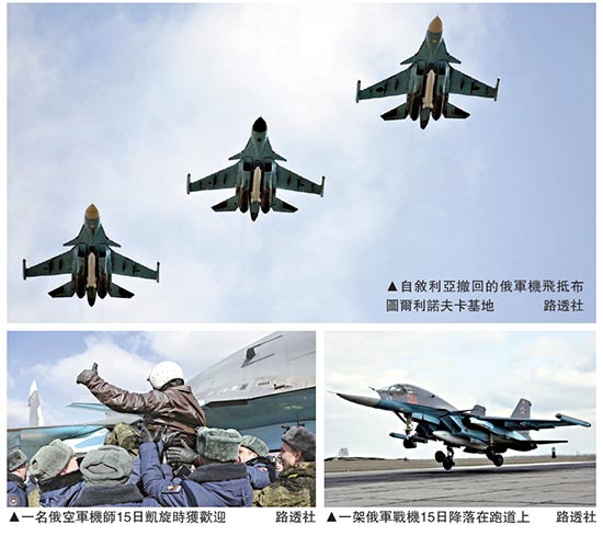普京这招的确是奇牌。按常理,叙利亚和谈经数次推迟和暂停后,终在十四日得已重启,俄作为谈判重要一方,本该在此关键节点增兵遣将,为巴沙尔撑足腰,争取最大利益。但普京却反其道而行之,不仅未增加军事力量,反而却在同一天宣布撤军,并即刻付诸行动。