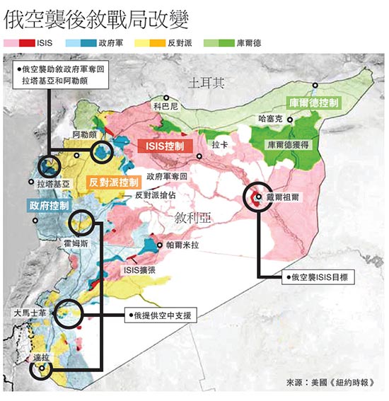 时光回溯到去年九月底,当时的叙利亚战场远不是今天这样。叙政府军在与西方支持的反对派武装较量中明显处于下风,ISIS等恐怖组织攻势凌厉,首都大马士革岌岌可危活动,巴沙尔政权风雨飘摇,随时可能被推翻。在此生死关头,俄派兵增援,战局迅速得以扭转。从俄军出现在叙利亚战场伊始,西方就预见到,推翻巴沙尔政权的目标已不可能实现,叙利亚问题的任何解决方案,都必须考虑普京亲自出面站台的巴沙尔政府。