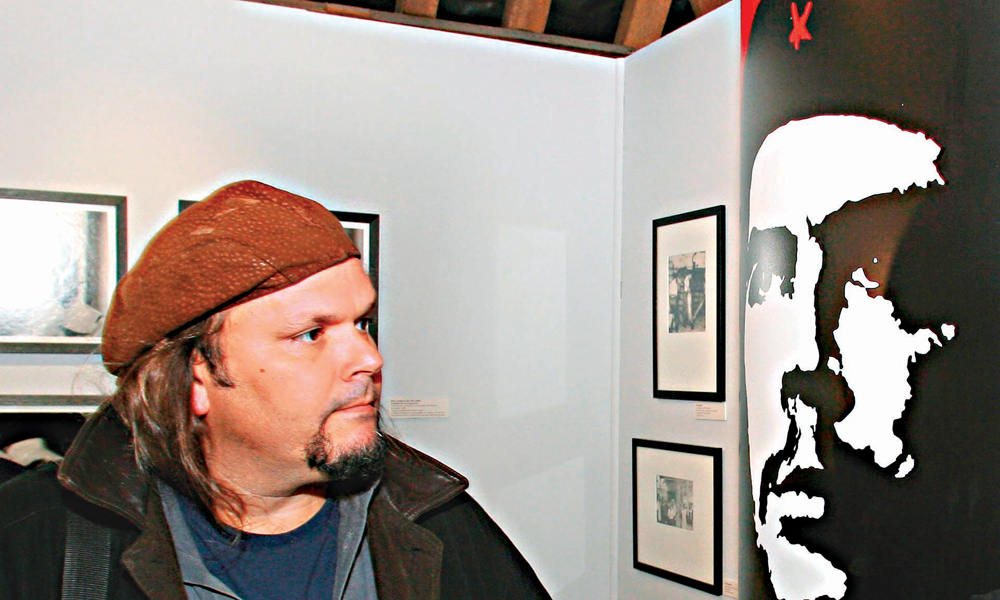 图:哲古华拉的长子卡米洛.古华拉凝视父亲画像/网上图片