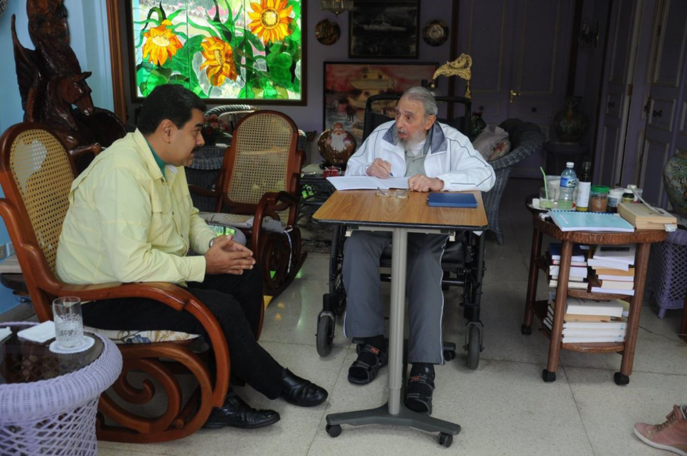 上周日,古巴官方报纸和古巴辩论(Cubadebate)官方网站登出上述照片,报道指双方会面发生在上周六。菲德尔.卡斯特罗在他惯常接待外国贵宾的房子会见了马杜罗,照片中,菲德尔穿着标志性的运动服和凉鞋。