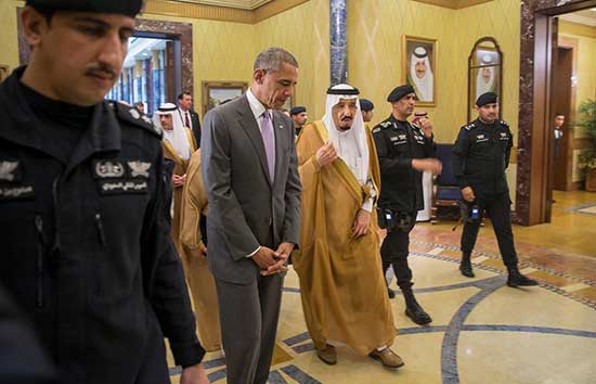 美国总统奥巴马(左)周三在利雅得与沙特国王萨勒曼会面/网上图片