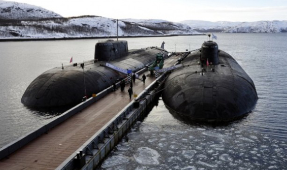 图:3月,两艘核动力巡航导弹潜艇停靠在俄罗斯北部的一座基地/网上图片