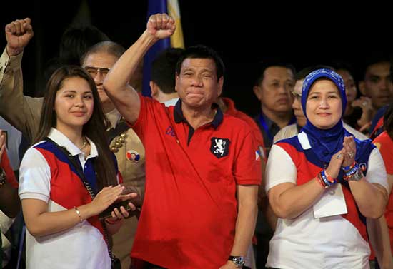 图:杜特尔特(中)成功当选菲律宾总统/路透社