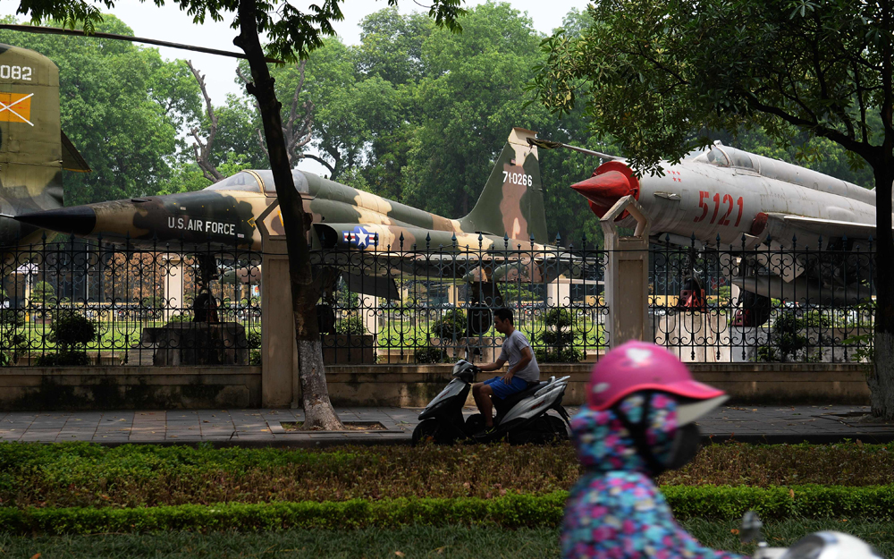 图:越南军事博物馆内展出美军在越战遗留的F-5战机和苏联的米格21战机/法新社