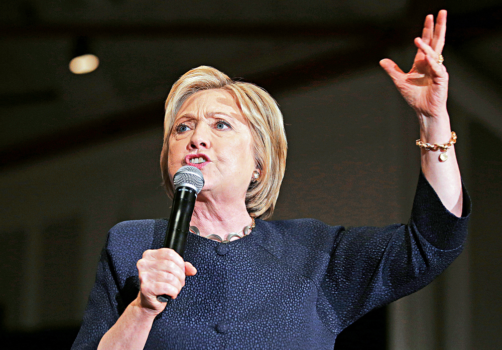 图:希拉里27日在加州拉票 美联社