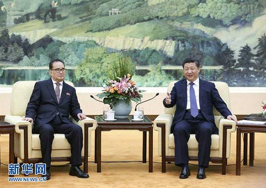 6月1日,中共中央总书记、国家主席习近平在北京会见朝鲜劳动党中央政治局委员、中央副委员长、国际部部长李洙墉率领的朝鲜劳动党代表团/新华社