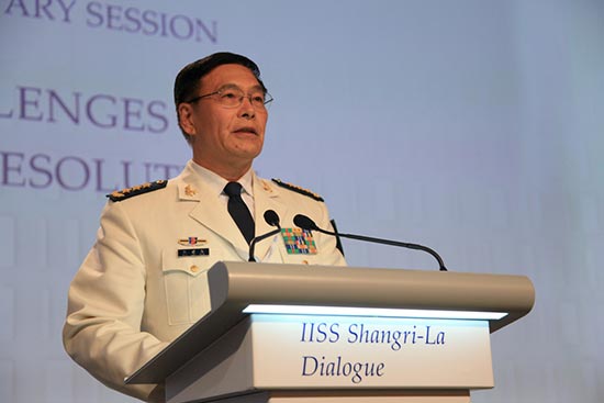 6月5日,中央军委联合参谋部副参谋长孙建国在香格里拉对话会上作专题发言\中新社