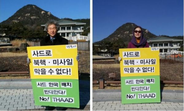 资料图片:韩国民众在青瓦台前抗议美在韩部署萨德系统