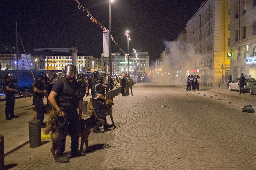 图:球迷在马赛爆发冲突后,法国警方上街巡逻\美联社