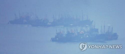资料图片:在韩国海域捕捞的中国渔船(韩联社)