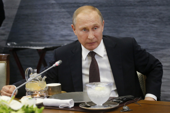 俄罗斯总统普京17日在圣彼得堡出席国际经济论坛。美联社