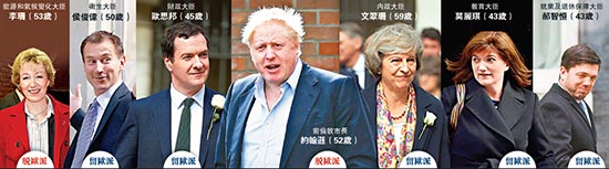 大公网6月27日讯 综合英国《卫报》、《每日邮报》报道:英国公投脱欧引发政坛大地震,政治格局将重新洗牌,朝野内斗加剧。执政保守党周一将开会讨论卡梅伦的继任者,党内有另外六人蠢蠢欲动,准备竞逐党魁,力阻脱欧派旗手、前伦敦市长约翰逊上台。据称,目前保守党内高层最看好的接任人选是内政大臣文翠珊。