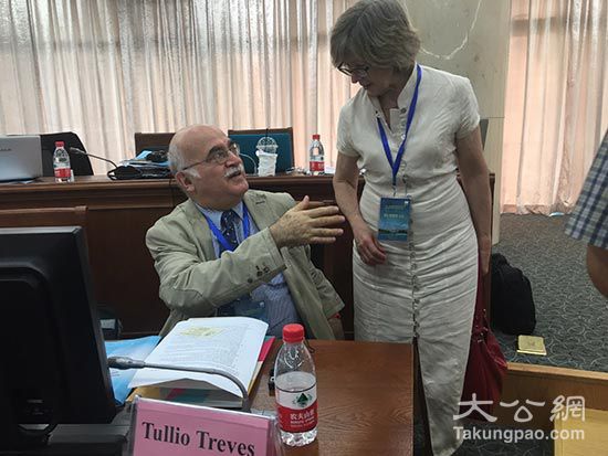 1996年8月1日,在《海洋法公约》缔约国第5次会议期间,99个缔约国的代表和40个国家的观察员聚集在纽约联合国总部。5个地区33名候选人展开了对首届法官的激烈竞选。经长达12个多小时的8轮紧张的无记名投票,意大利籍法官图里奥·崔维斯顺利当选,成为首届21名国际海洋法庭法官。20年后,他同样是留着一字胡,只是腿脚不那么再如年轻时灵便。