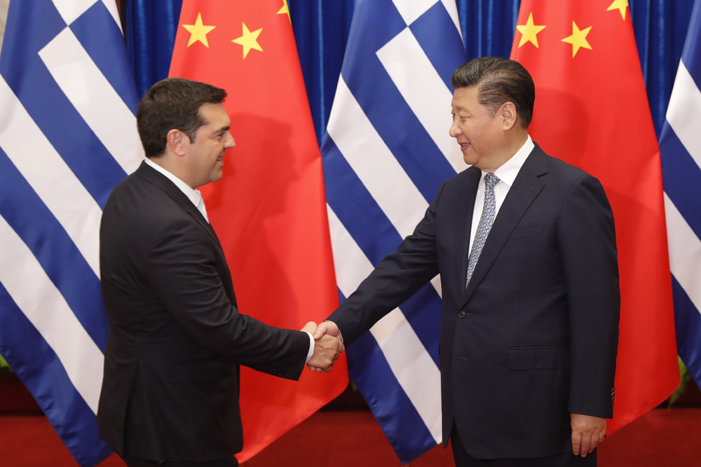 习近平欢迎齐普拉斯在中希建立全面战略伙伴关系10周年之际对中国进行了成功访问,取得重要成果。习近平指出,中国和希腊建交44年来,双方秉承相互尊重、平等互利的原则发展双边关系,结下历久弥新的传统友谊。中国视希腊为欧盟中的战略伙伴,在当前国际形势下,中希两个古老文明国家应该携手同心,巩固政治互信,深化互利合作,推动中希、中欧全面战略伙伴关系再上新台阶。